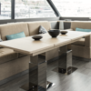 Its compact design and smooth electric movement allow seamless transformation of living spaces on board. With a vertical stroke of 270 mm, this table lift enables easy adjustment of the tabletop height, optimizing the use of available space while maintaining full stability at sea.