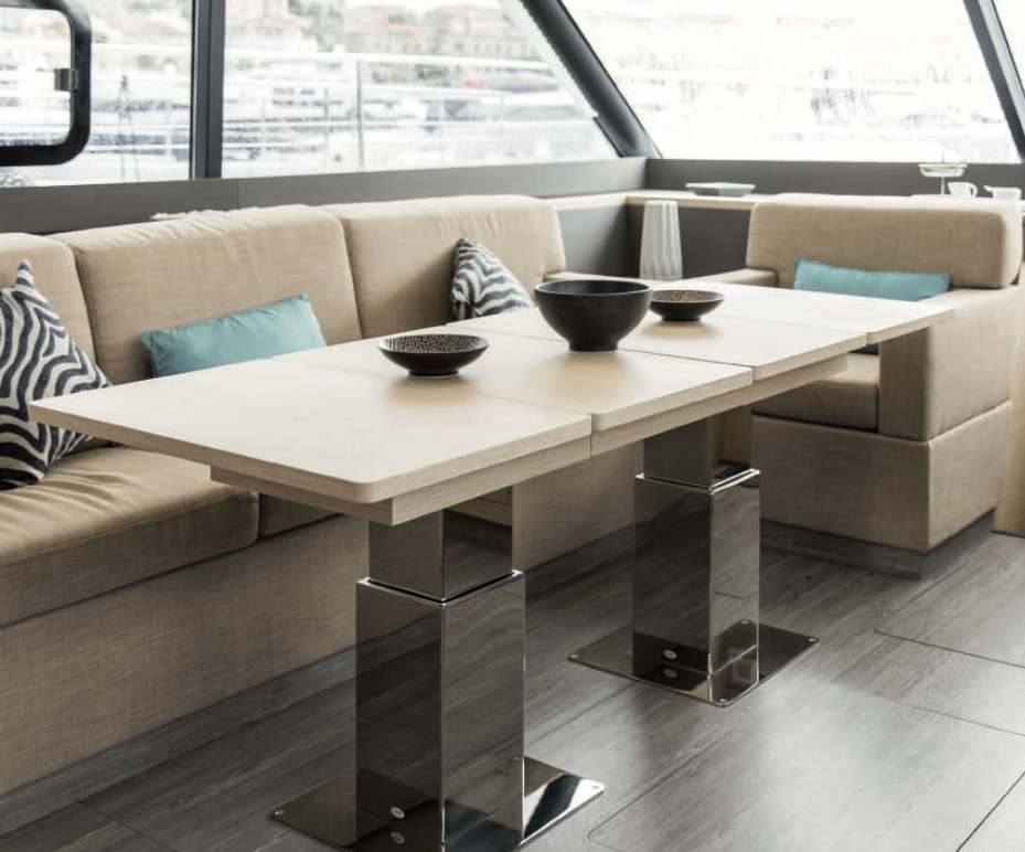 The NL0885 electric table lift is the perfect solution for yacht owners seeking a reliable, elegant, and space-saving table pedestal. Its mirror-polished stainless steel, precise motorized movement, and compact dimensions make it ideal for modern yachts, catamarans, and luxury motorboats. It transforms your onboard living spaces effortlessly while ensuring stability, durability, and refined marine aesthetics — a smart investment for any nautical interior.